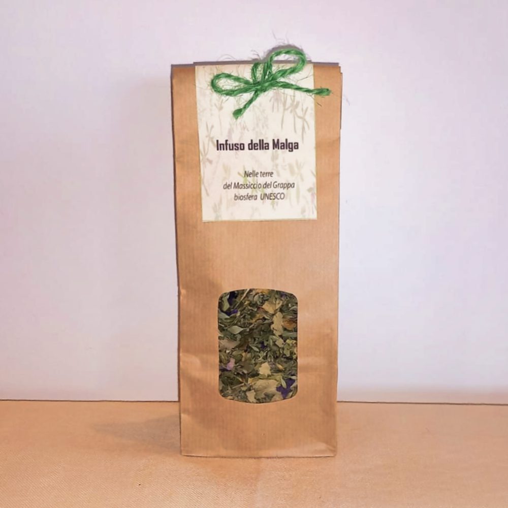 L’infuso della malga con timo, ortica, menta, malva e monarda è una miscela di erbe alpine dalle spiccate proprietà balsamiche, emollienti, antinfiammatorie e depurative, ideale per il benessere generale dell’organismo, in particolare per l’apparato respiratorio e digerente.